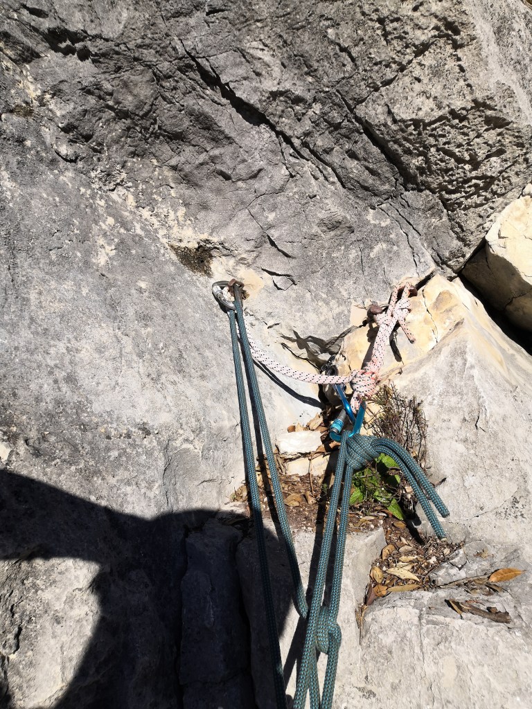 - Da qui si può continuare per circa 100m con due lunghezze di corda (III/IV) e percorso non obbligato su terreno non entusiasmante per poi scendere dal bosco sopra la parete oppure calarsi da S6.