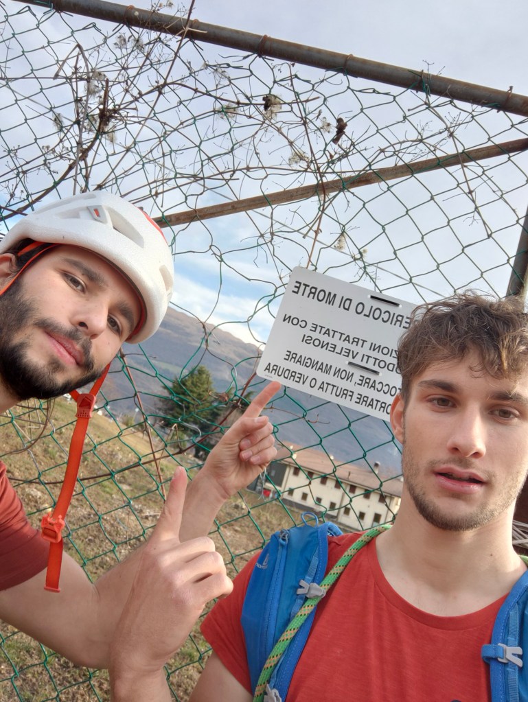 Attacco: Da Caprino veronese proseguire fino al ristorante “La Baita” (presente su maps la posizione) e prendere la stradina che scende sulla sinistra del ristorante. Scendere seguendo sempre la strada fino a un curva verso destra in corrispondenza della quale una traccia si stacca sulla sinistra (possibile parcheggiare poco prima spiazzi sulla sinistra della strada ). Seguire la traccia nel bosco e a un bivio tenere la destra fino a quando non si giunge a una zona da cui si vede benissimo la parete. Scendere verso la parete e prendere la prima traccia che si stacca verso la parete che porta in breve all’attacco (scritta e spit). [0.20 h]