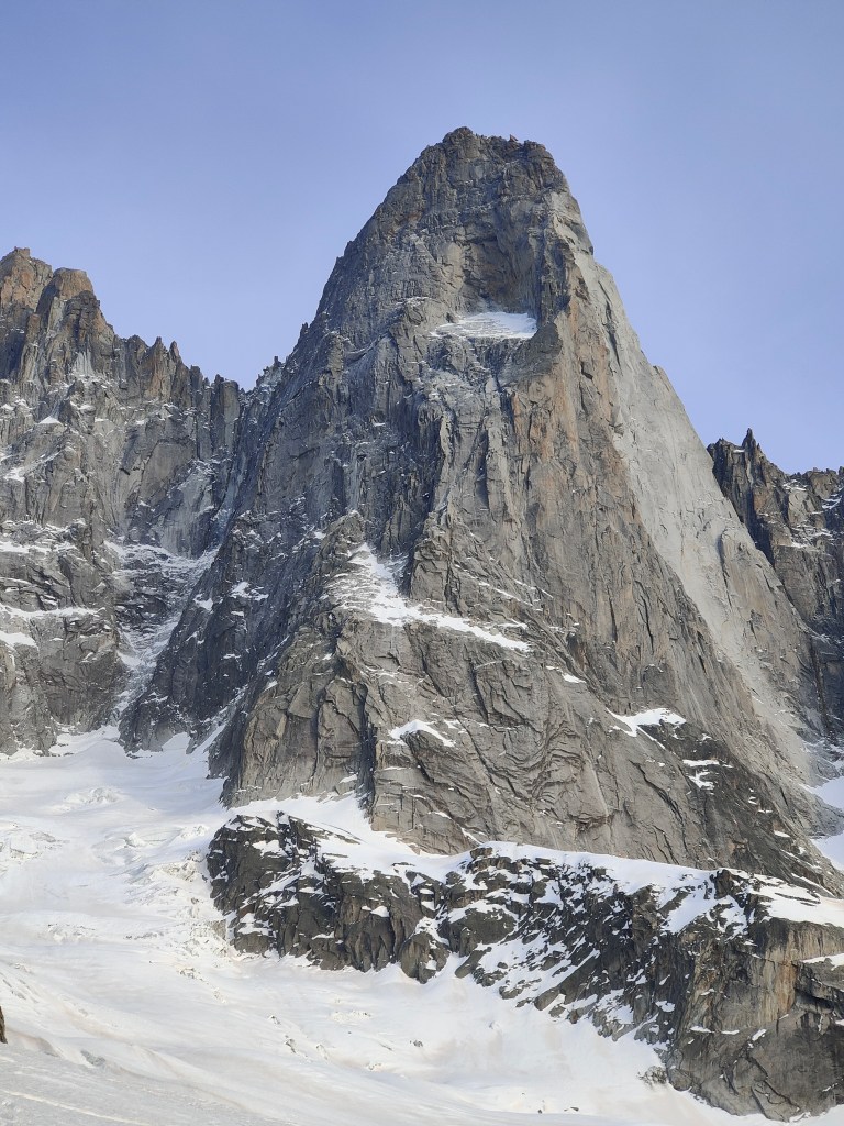Delle sei nord classiche delle alpi il Petit Dru mi ha sempre attirato particolarmente, è una parete enorme e fredda come tutte le altre ma mi ha sempre trasmesso un senso di solitudine e inaccessibilità speciale. Forse perché ha sia un avvicinamento che una discesa rognosi e i report di salite sono così pochi che si contano sulle dita di una mano ogni anno, quasi a voler mantenere l’aura di mistero che avvolge questa cima.