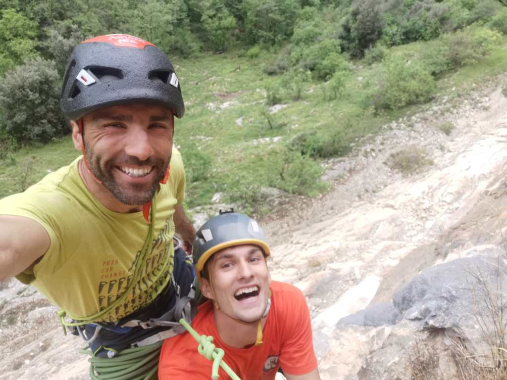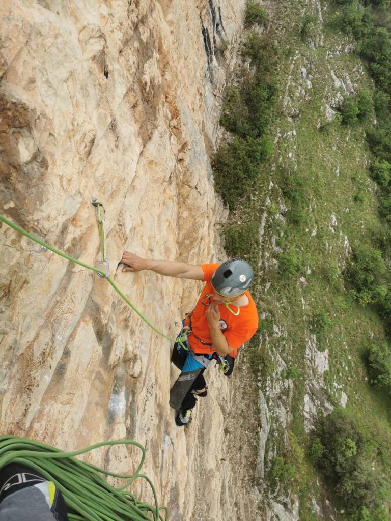 Bella e varia via che affronta nei primi tre tiri una zona di parete estremamente strapiombante ed esposta per poi salire delle placche di roccia compatta. Protetta molto vicina in vero “stile parete rossa” permettendo di provare tranquillamente tutti i passi.