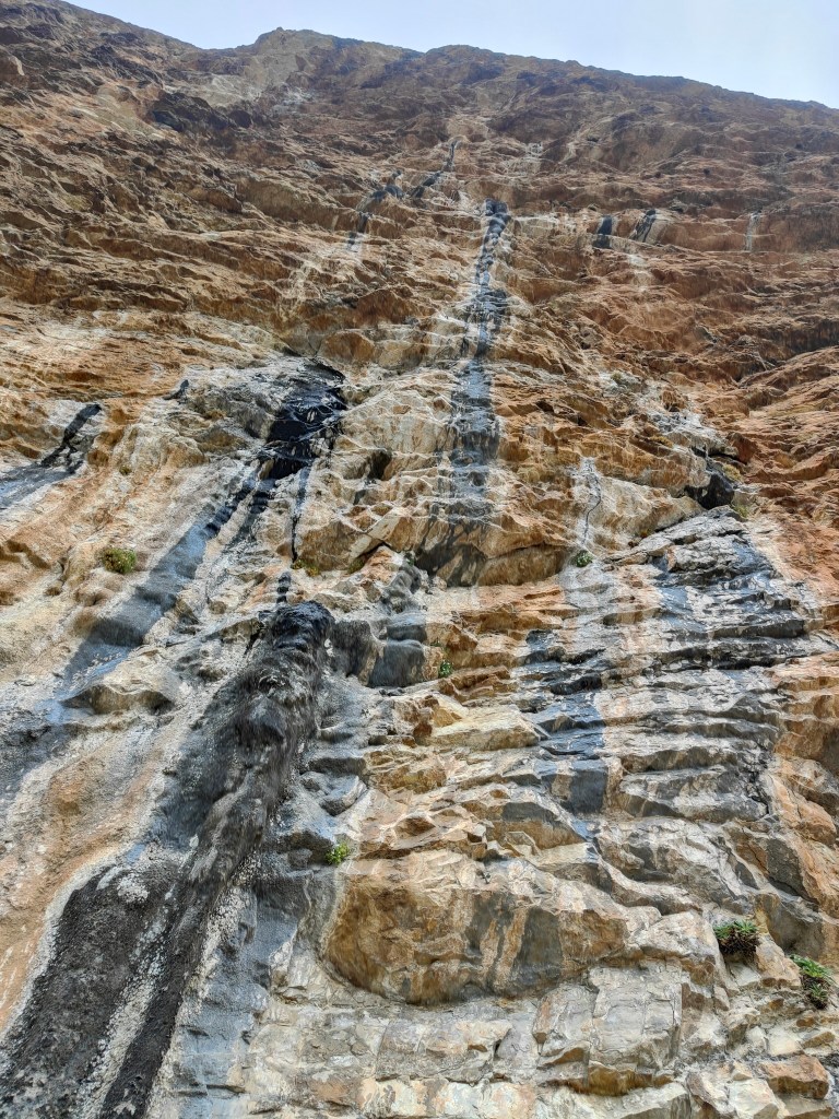 3) Salire sopra la sosta e poi traversare a sinistra su buone prese. Poi ritornare a destra per superare un tettino e proseguire su muro strapiombante con arrampicata di continuità con prese buone ma a volte lontane. Superare una sezione dura su piccole tacche in placca e poco dopo raggiungere la sosta. [7b, 25m]