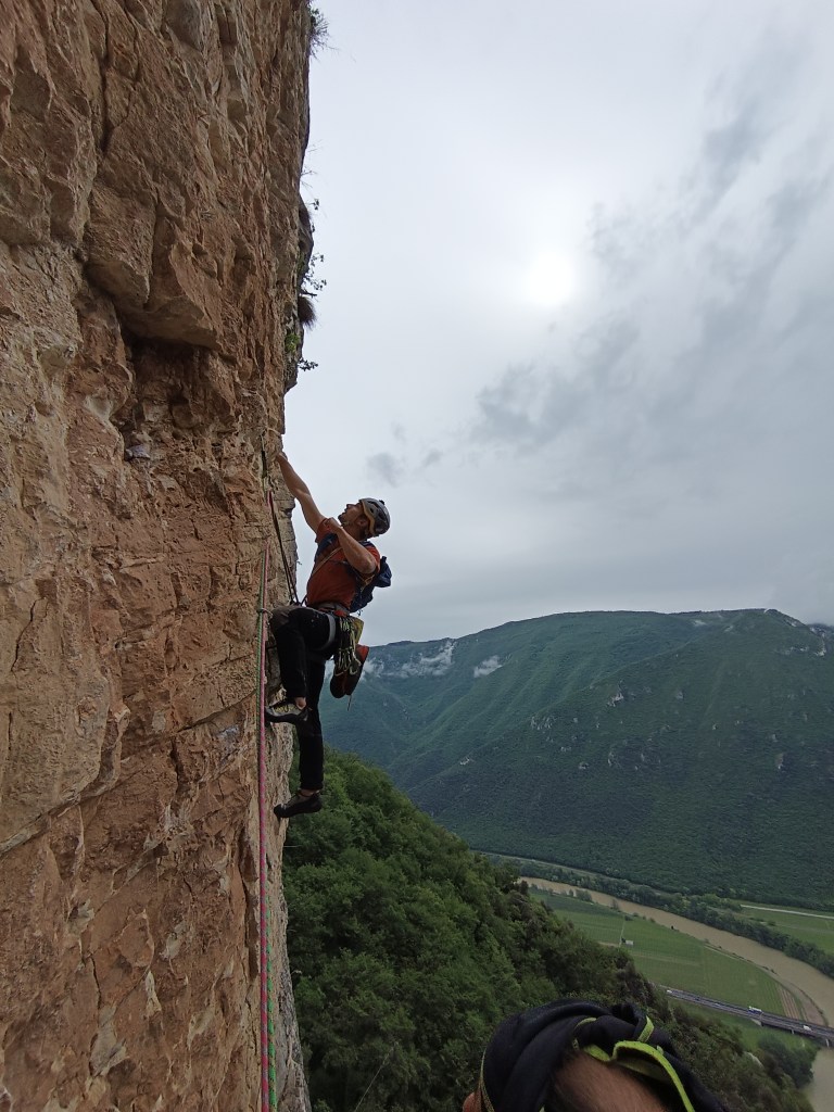 Itinerario che sale la parte sinistra della struttura fra eldorado e quattro passi su marte. Arrampicata atletica e un po’ delicata per la qualità della roccia nei primi tiri. Ultimo tiro molto bello e vario.