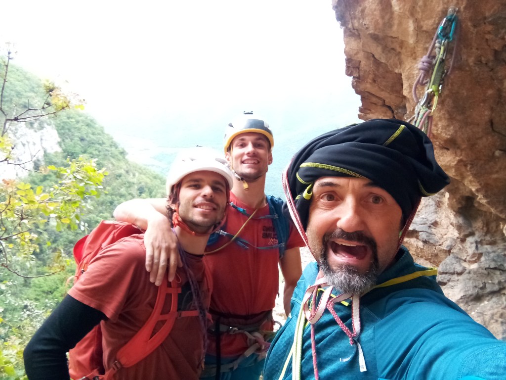 Materiale: 16 rinvii, materiale per collegare gli spit in sosta.