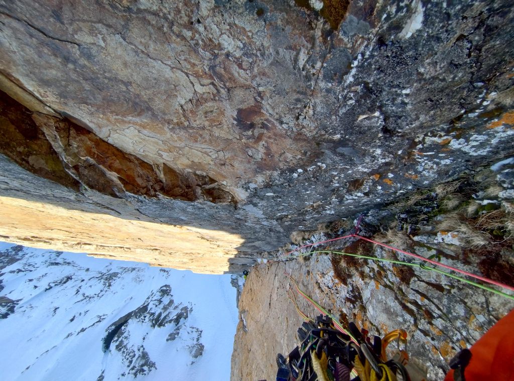 Cercando informazioni e chiedendo in giro non sono riuscito a reperire nessuna informazione su un’altra salita nella stagione “fredda” quindi potrebbe essere che questa sia effettivamente una prima invernale. Comunque poco importa quello che conta è che ci siamo divertiti un casino e secondo me la via merita altre ripetizioni anche in veste invernale.