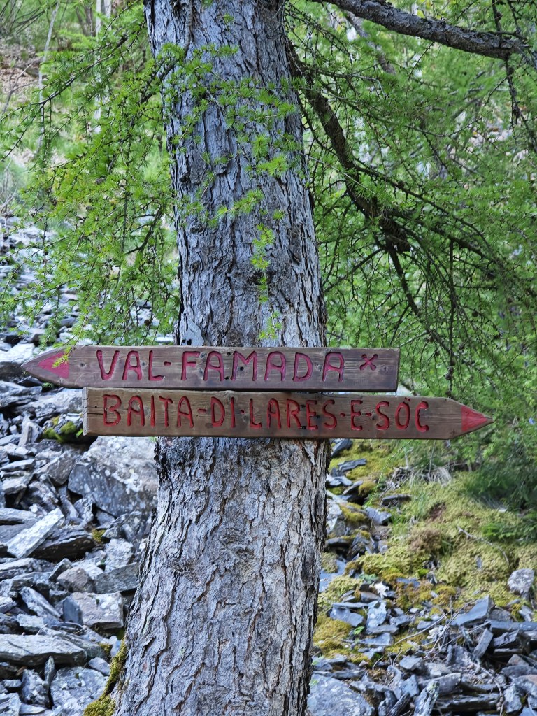 Magnifico luogo sicuramente poco frequentato ma decisamente meritevole e speciale, la roccia poi è veramente stupenda e ricorda molto quella del “vicino” Pinnacolo di Maslana. Sui pilastri in Val Famada sono presenti tante vie tutte abbastanza corte (3-4 tiri) e generalmente piuttosto in stile chiodatura plaisir. Sicuramente vale la pena di farne 2 o 3 in una giornata essendo gli attacchi molto vicini e le discese in doppia praticamente immediate. Descrivo qui questo itinerario (richiodato nel 2017) che mi è piaciuto molto ma soprattutto descrivo l’avvicinamento che non è così facile da azzeccare al primo colpo!