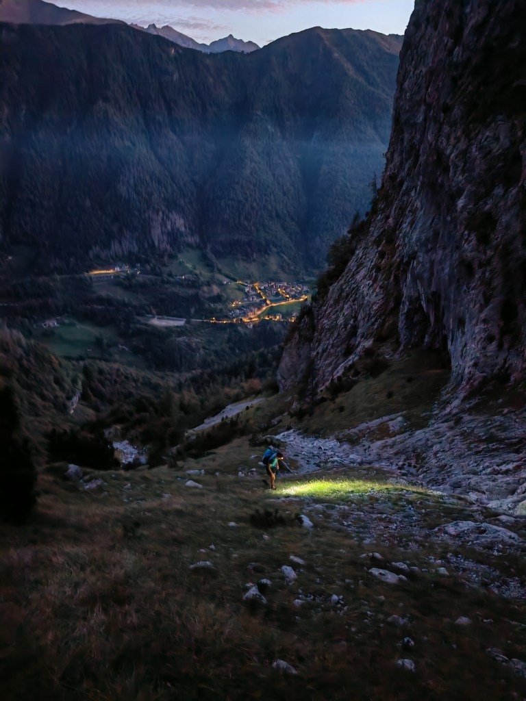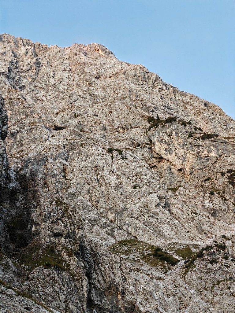 Attacco: Dal parcheggio in località Zanetti-Valcanale (grande parcheggio poco dopo delle baracche in lamiera sulla sinistra della strada) ritornare indietro per 100 metri circa fino ad una strada sterrata che scende verso destra. Seguire la strada in discesa fino ad un bivio con palina, seguire verso sinistra il sentiero fino a quando non si riesce a scendere verso il fiume per attraversarlo. Qui si reperisce un sentiero sull’altro lato del torrente, a questo punto noi ci siamo persi e abbiamo risalito il letto del torrente che scende direttamente dal Fop per poi ritrovare più avanti la traccia giusta molto più sopra ravanando un po’ nei boschi. Alla fine ci abbiamo comunque messo 2:30 h come indicato in altre relazioni, lascio la traccia gps ma consiglio di dare un’occhiata alla relazioni degli apritori qui per una descrizione più completa dell’avvicinamento.