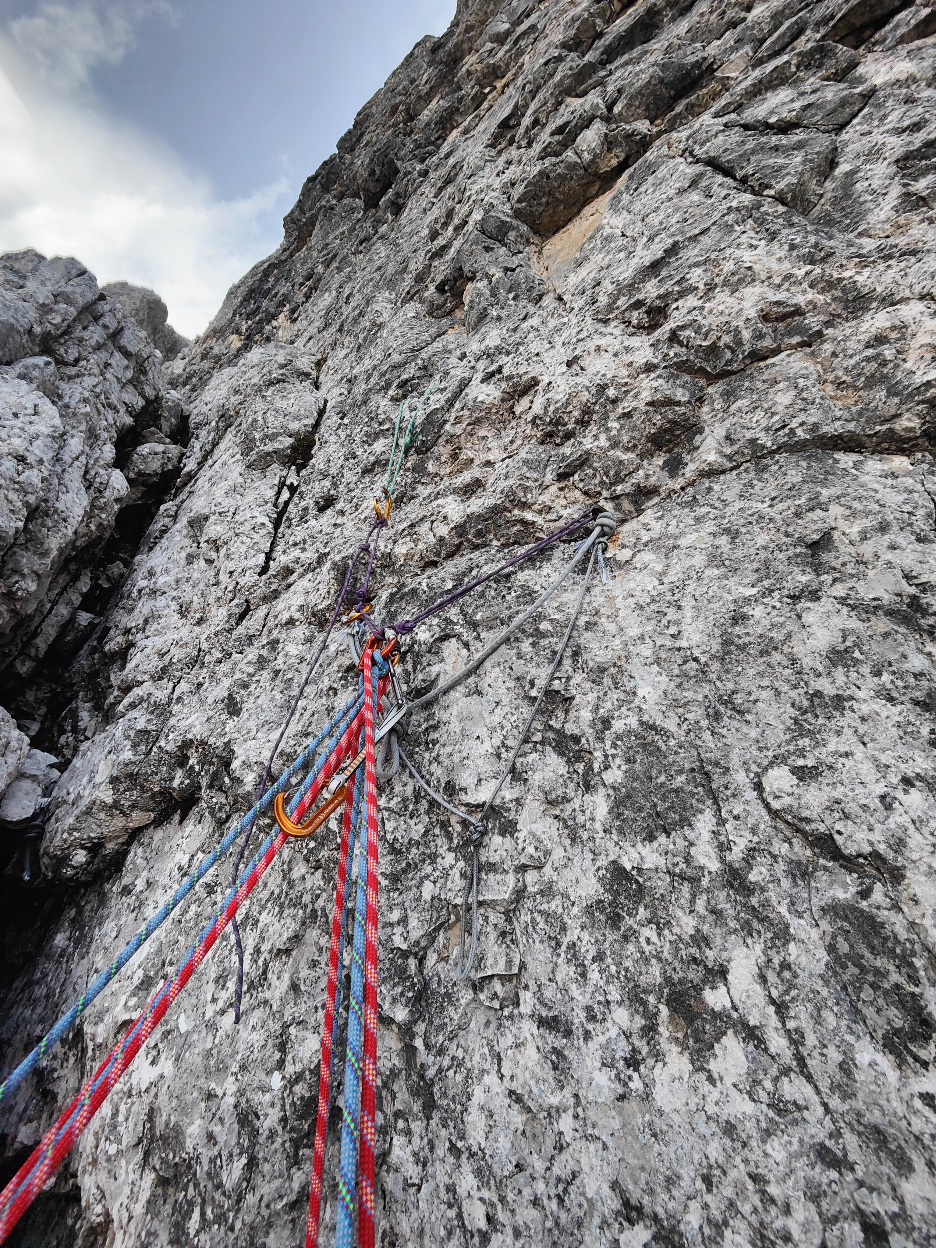 Via poco conosciuta ma decisamente meritevole e sicuramente lontano dalle masse che facilmente si trovano su altre salite in questa zona, mi ha stupito la qualità della roccia decisamente sopra le aspettative e il tracciato sempre logico che non oltrepassa quasi mai il buon vecchio “VI classico” escluso un corto tiro che si può risolvere approfittando di un paio di provvidenziali chiodi nel posto giusto!