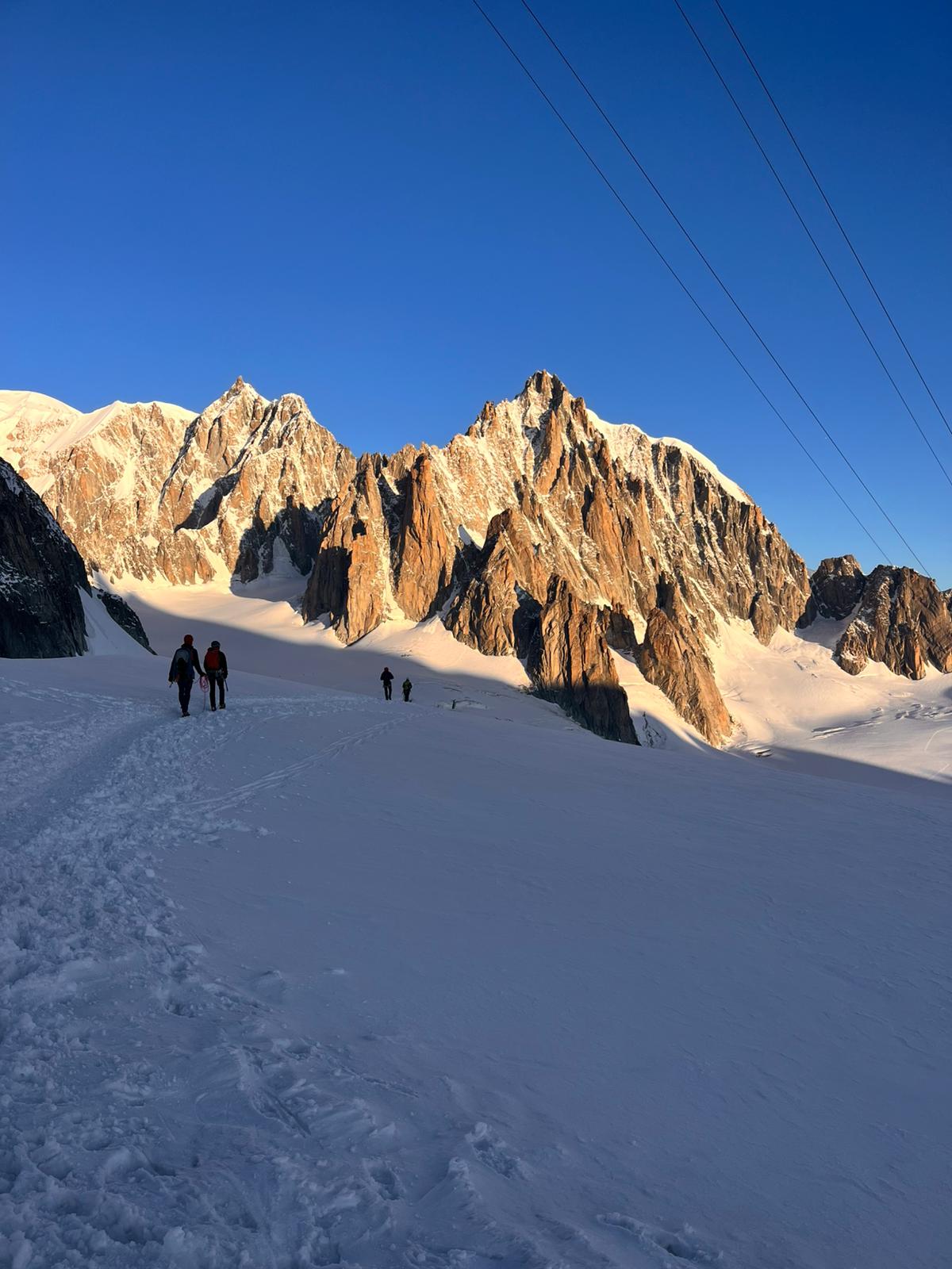 Giorno 1: Ritrovo e salita al Rifugio Torino con la Skyway. Legature su ghiacciaio e recupero da crepaccio.