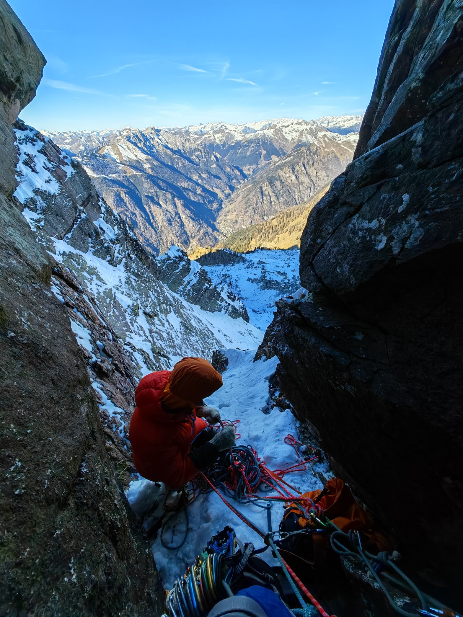 Via mitica per chiunque abbia il “piacere” di trovarsi spesso a ravanare delle Orobie. Sale una sequenza di camini e fessure che in buone condizioni si riempiono di ghiaccio. Spettacolare il secondo tiro dove, dopo essere entrati nelle viscere della montagna, si esce di nuovo grazie a un provvidenziale buco nella grotta che permette diContinua a leggere “Super Piter – Monte Aga”