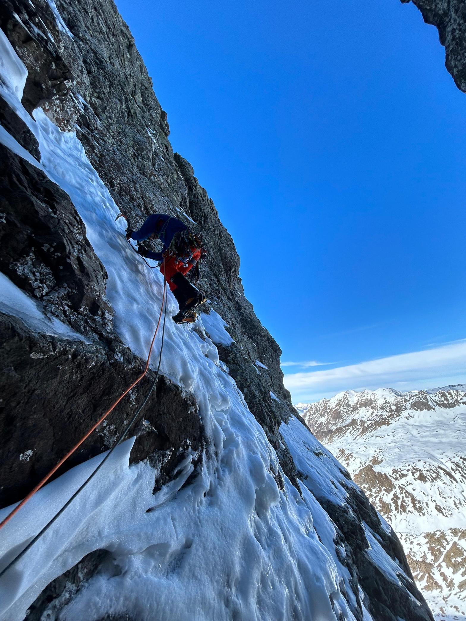 Via aperta insieme a Federico Centurioni e Fabio Romiti dopo che avevo visto la linea dalla cima dell’Aga qualche giorno prima. Linea molto logica e divertente con alcuni tiri davvero entusiasmanti, il terzo in particolare era veramente uno spettacolo nelle condizioni trovate da noi. La via segue un colatoio verticale interrotto da due grottine conContinua a leggere “Il dono di Eolo – Nord Grabiasca”