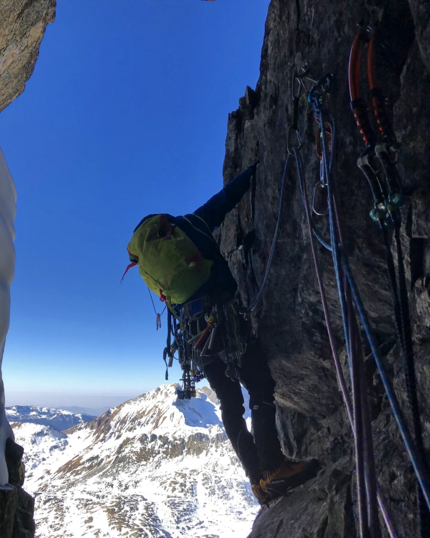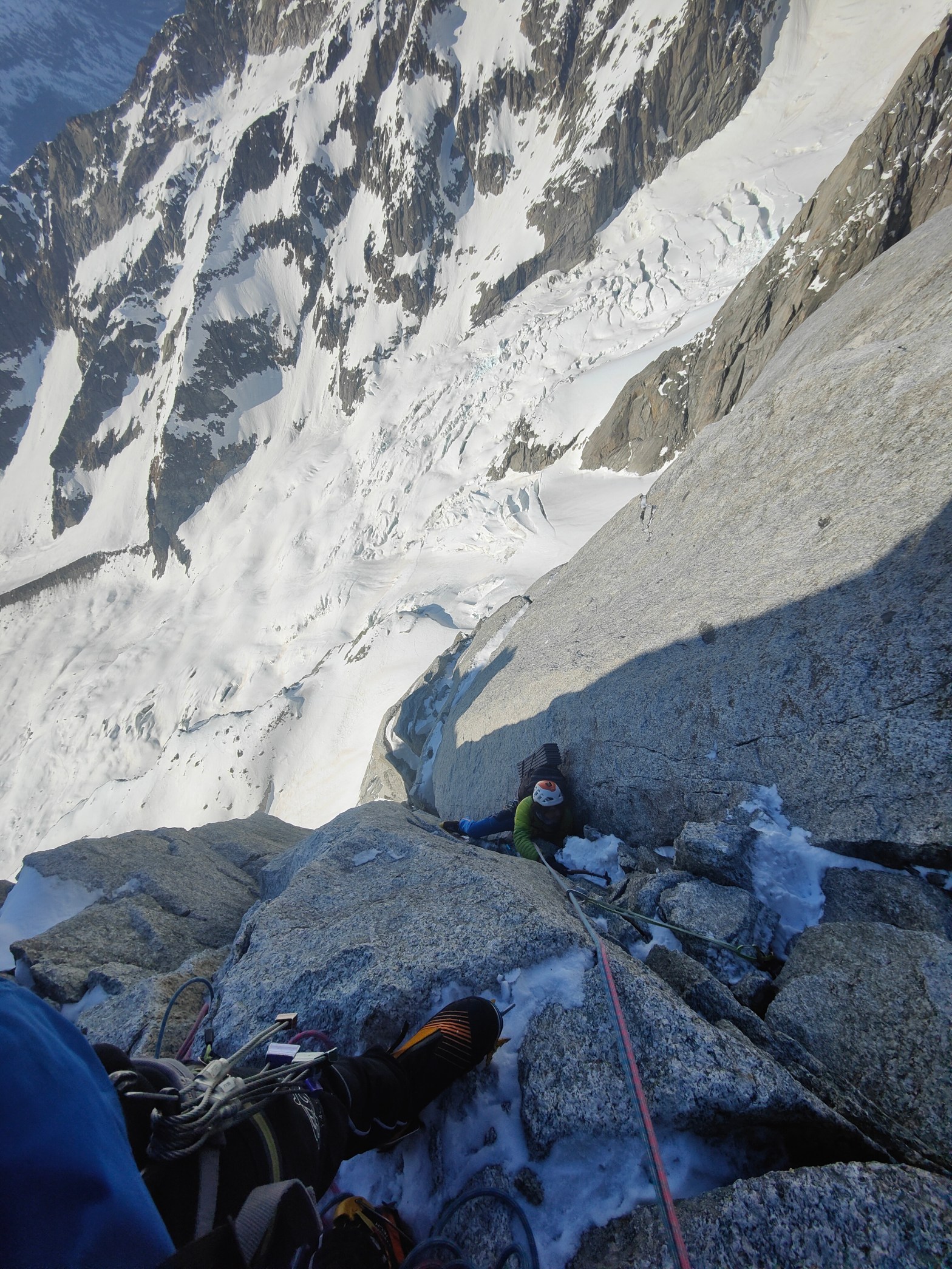 Una via che sicuramente non ha bisogno di presentazioni e che rimane ancora un “benchmark” dell’arrampicata mista. Una linea perfetta che insegue delle esili placche di neve/ghiaccio incollate alla roccia liscia che permettono una delicata progressione verso l’alto. Solitamente gli ultimi tiri non si formano e si esce sulla vicina “Rebuffat”, noi siamo stati fortunatiContinua a leggere “Beyond Good and Evil – Aiguille des Pelerins”